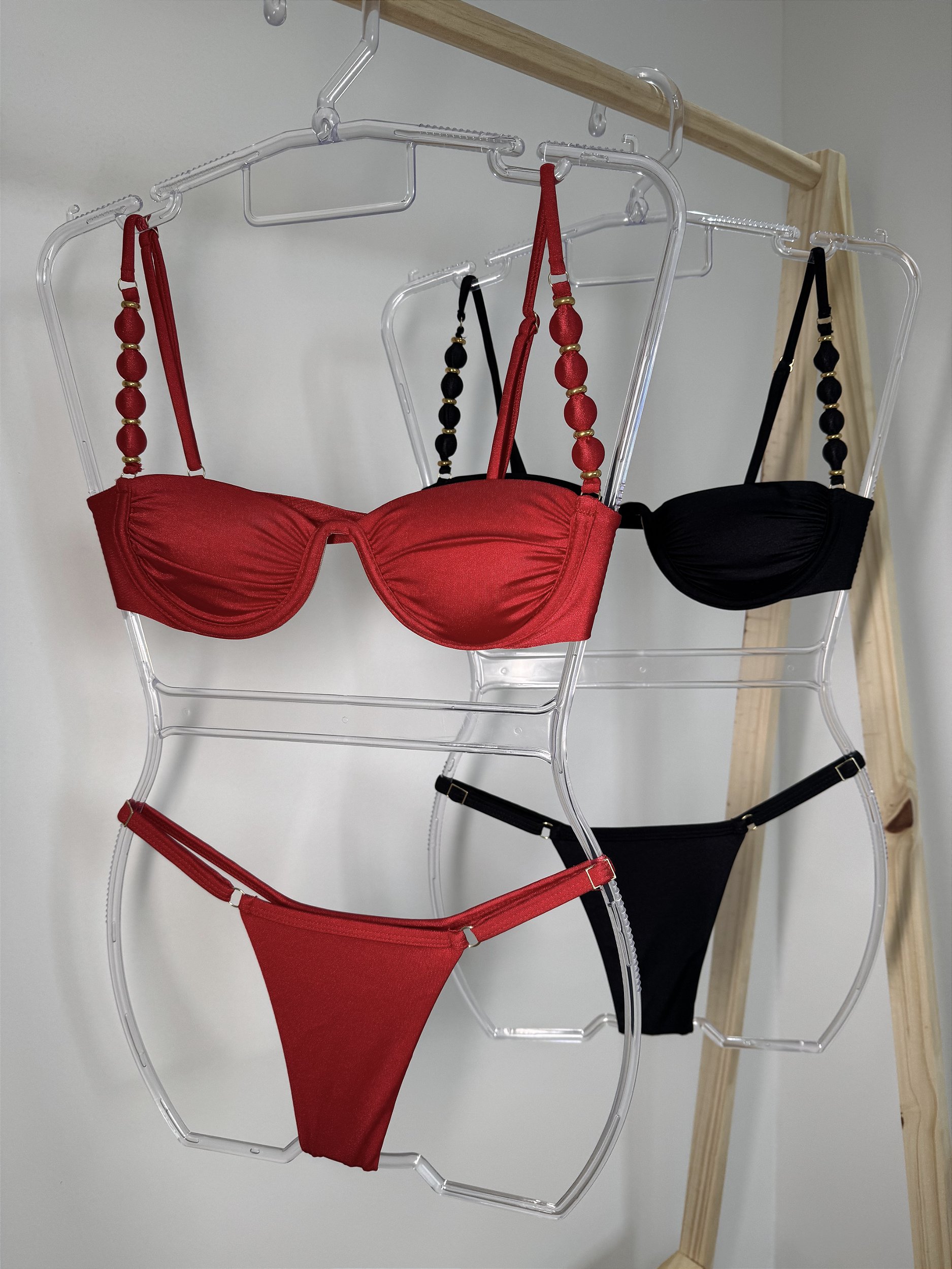Conjunto Pipa- Top com bojo removível, aro inteiro forrado e alça regulável + calcinha fio regulável